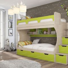 Киви №1 Кровать 2-х ярусная (Дуб Молочный/Лайм)